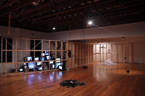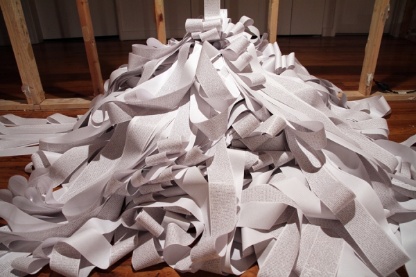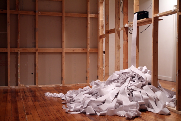 In the images below the printer is set up at Conical. Conical has a rich history in Melbourne with over 180 artist having showed there previously. For this work I gathered all the names of the artists that had showed at Conical and had the printer harvest information about each artist from the internet, print out the text and then continue to search for more.